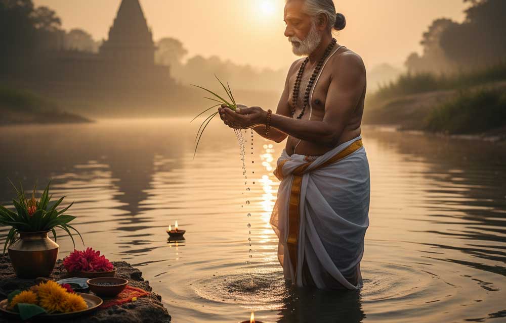 👉 సాధారణ తర్పణంలో నీరు, ప్రత్యేక తర్పణంలో నువ్వులు వాడాలి.